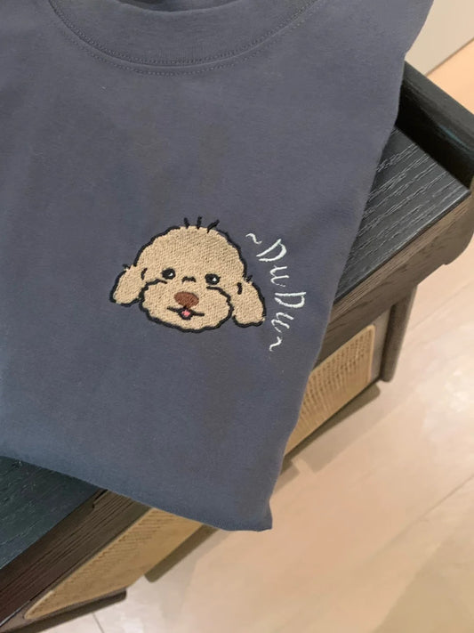 Personalized Dog Portrait Embroidered Sweatshirt Custom Pet Face Hoodie